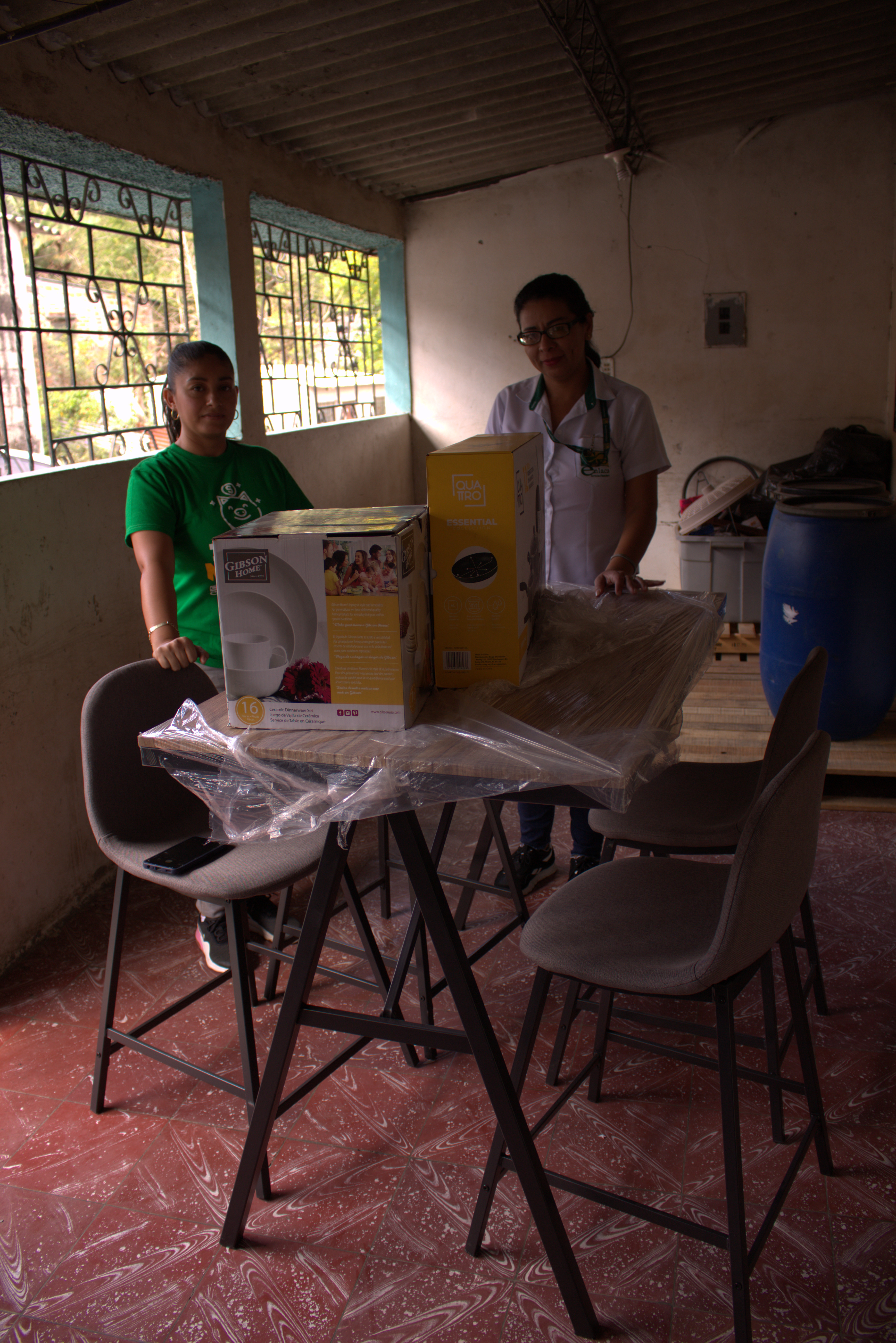 Asimismo, en la agencia Soyapango, apoyamos a nuestra compañera Haydee Meléndez de Vásquez, colaboradora de oficios varios, quien perdió parte de su cocina debido a un incendio en su hogar. Con el deseo de ayudarla a reconstruir su espacio, le entregamos un juego de mesa renovado y utensilios de cocina.